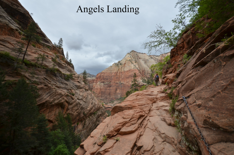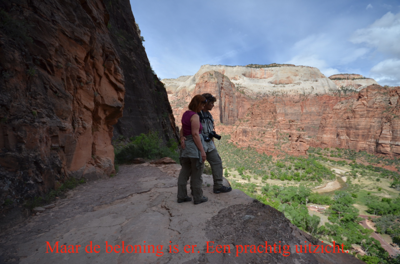 Via Bryce Canyon NP rijden we door naar Zion NP, beroemd om zijn "Angels landing", een 454 mtr hoge rotsformatie waarvan de beklimming nog een hele tour is. Dat heeft zijn voordelen want het wordt afgeraden om kinderen mee naar boven te nemen. Er zijn al meerdere mensen overleden op deze trail. We huren nog een dagje een fiets en rijden de volgende dag door naar Death Valley .