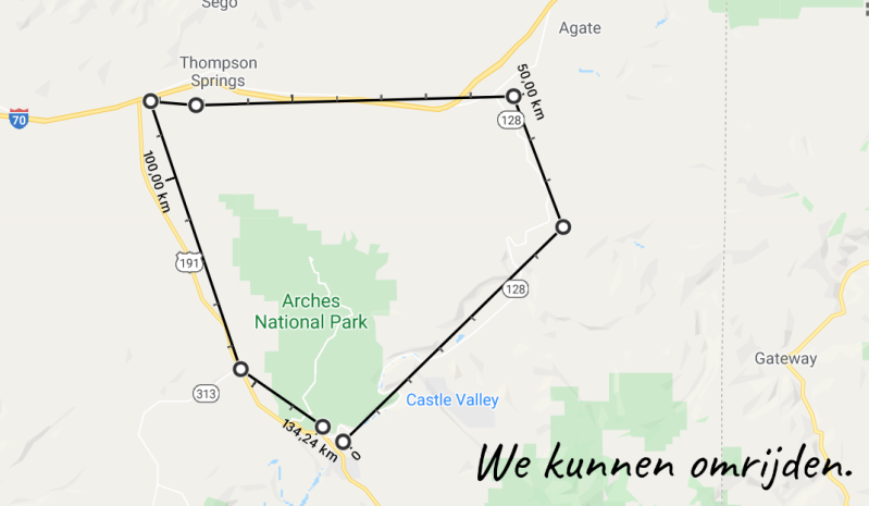 In Moab zijn veel films opgenomen. Vooral westerns. Iedereen hier die ouder is dan 3 jaar weet wie John Wayne is. Onze gids verteld ook over de beroemde commercial van Chevrolet: Ze hadden een heuse Chevy Impala compleet met model op de 2000 feet (610mtr) hoge Castle Rock gezet. Nu is dat niet bijzonder maar we praten over 1964!!!!! Toen vierde ik net mijn 1e verjaardag. Dat is dus echt lang geleden.