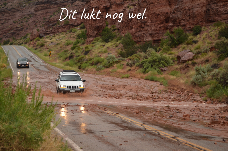 Vanuit Yellowstone via Colorado naar Moab waar we weer gaan paardrijden en van daaruit naar Page. Het blijft geweldig. We zien stoere mannen te paard koeien drijven. Dat zijn dus de traditionele cowboys. Je ziet dat tegenwoordig deze cattle drives vaak gedaan worden met allerlei voertuigen zoals auto's, motoren en vooral quads. Als we net de paarden afzadelen begint het me toch te regenen! Er vallen een paar rotsblokken op de weg. Als dat in ons kikkerlandje gebeurd pak je gewoon een afslag een paar honderd meter verderop maar er zijn hier niet zoveel wegen. We wachten geduldig en na een kleine anderhalf uur kunnen we weer verder. Anders hadden we 150 km om moeten rijden!!