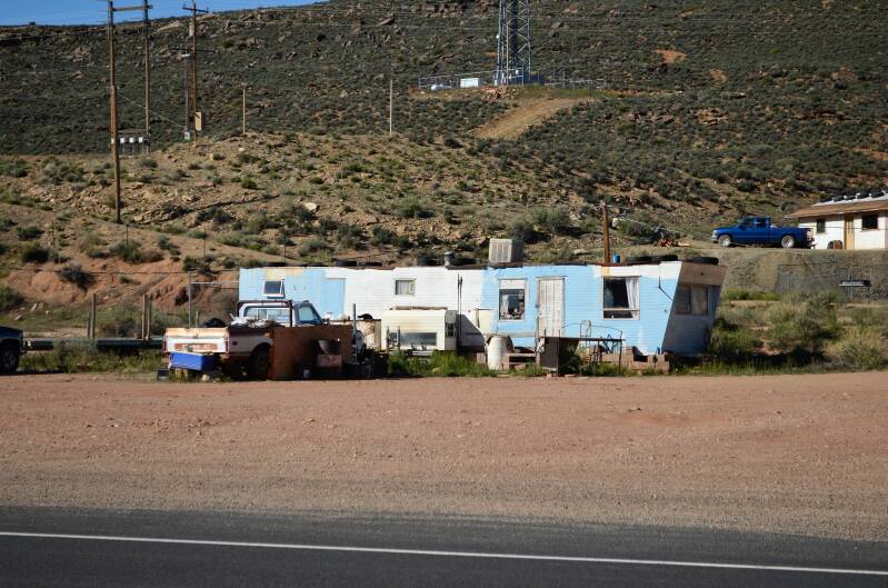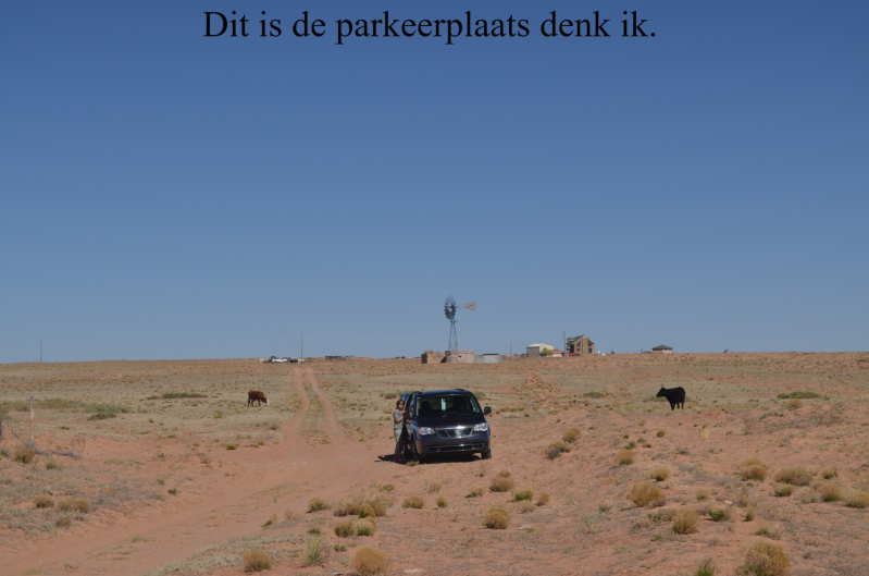 Verder door Sedona, via Flagstaff naar Tuba City. We hebben hier al vaker gereden maar het blijft geweldig. We gaan nu rechts af richting Coalmine Canyon. Nog niet zo bekend bij het grote publiek. Vanaf de weg zie je het niet eens. Dus gaat het zoals altijd: we vragen de weg. De Indiaan die ons "wegwijs" maakt is gewoon nuchter en we rijden een stuk achter hem aan. We nemen nog een onverhard pad en zigzaggen tussen de koeien door. Ineens een afgrond en we hebben het gevonden. Prachtig, mooie kleuren en verder geen mens te bekennen.
